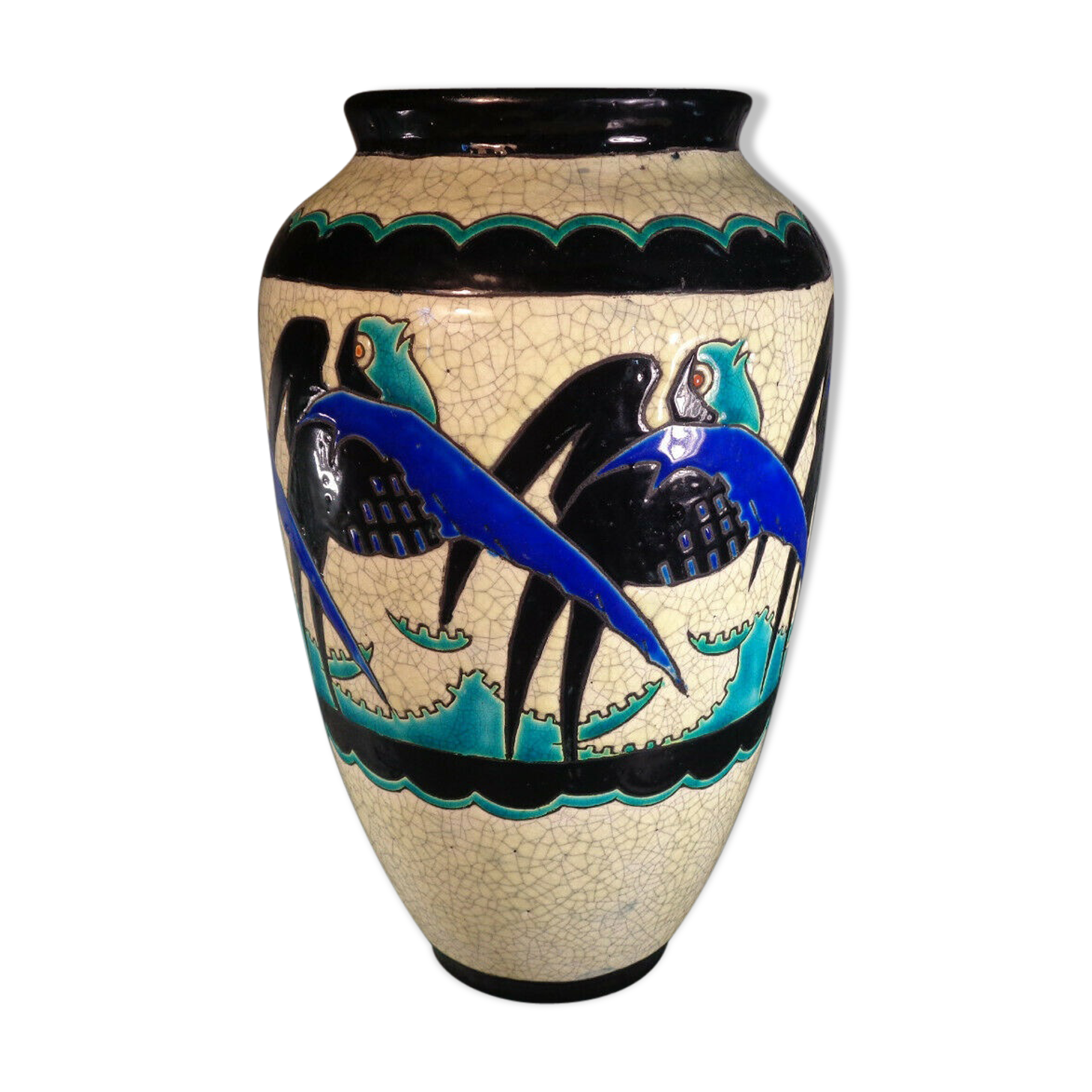 Vase Art Deco Keramis Boch La Louviere Charles Catteau Swallows Selency